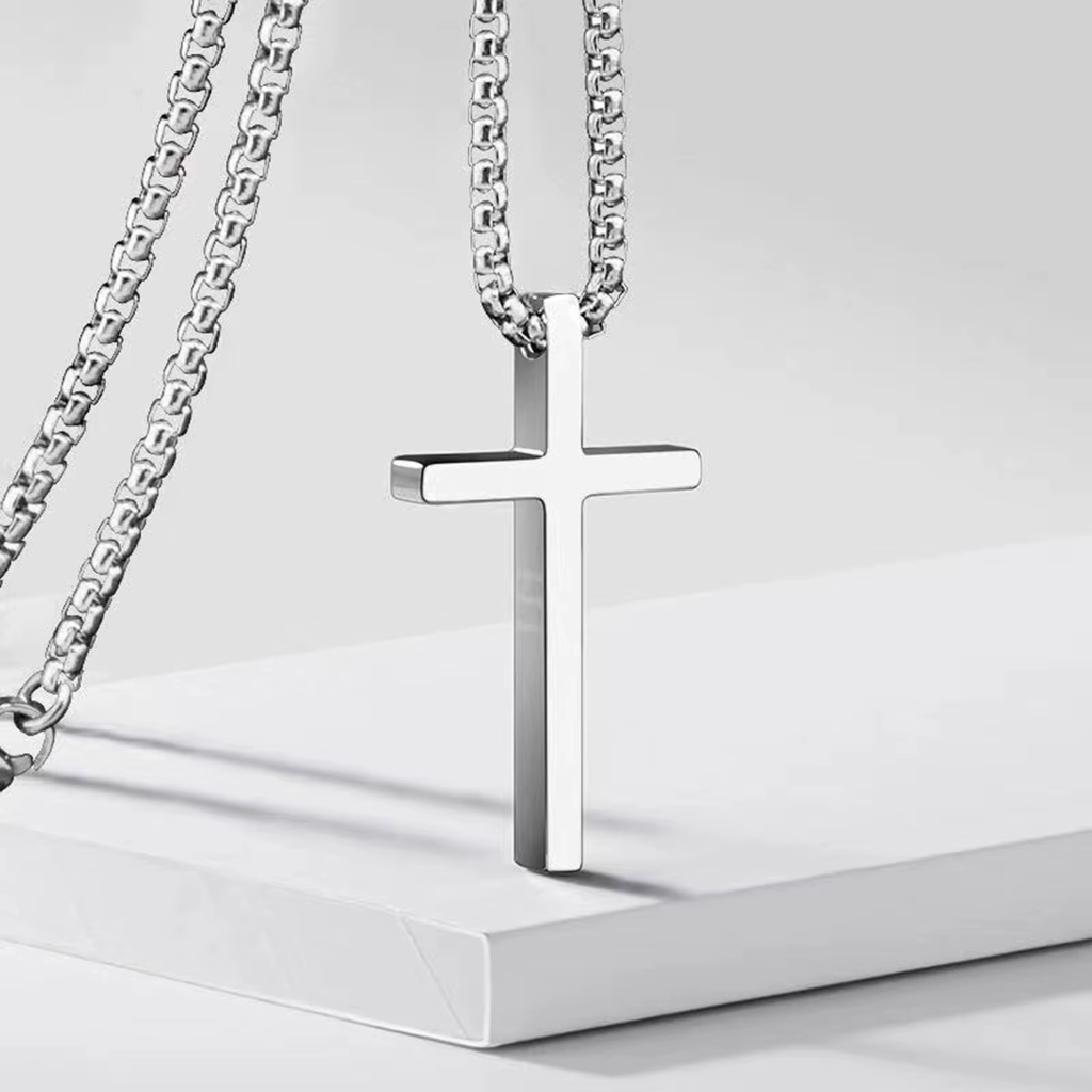 O pingente de cruz traz um visual clássico reinterpretado de forma moderna. Sem excessos, sem detalhes chamativos — apenas forma, símbolo e presença.
